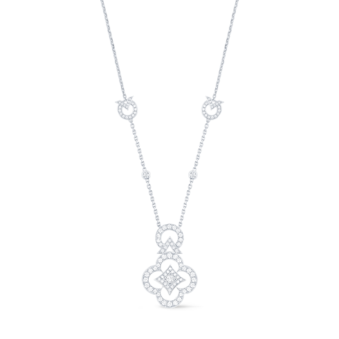 メゾンのハイジュエリーから着想を得たダイヤモンドのコレクションライン「アルダント」。1896年に創業者ルイ・ヴィトンの息子、ジョルジュ・ヴィトンがデザインしたアイコニックなモノグラム・フラワー モチーフを象ったプレシャスな逸品です。卓越したクラフツマンシップが際立つホワイトゴールドのエレガントなロングネックレス──ブロッサム・モチーフを通り抜ける光は、ダイヤモンドの眩い輝きを生み出し、その美しさを引き立てます。