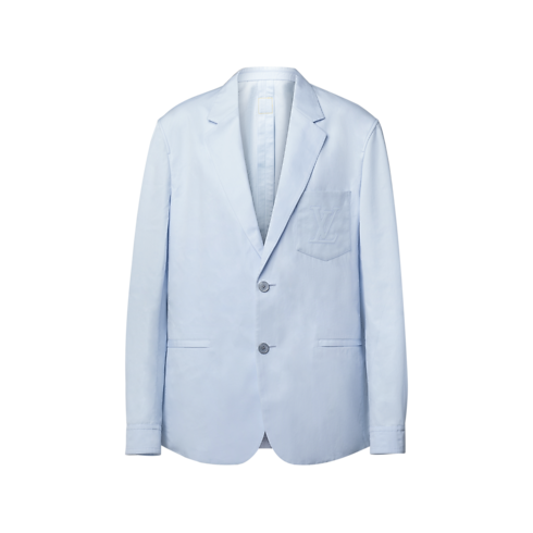軽量なコットン&シルクの混紡素材で仕立てた、淡いブルーのジャケット。フォーマルとカジュアルの境界を曖昧にし、春の装いにエフォートレスなエレガンスをもたらすアイテムです。柔らかく構築的なアンラインドのシルエットに、シャツ風のカフとスマートなノッチドラペルを組み合わせ、胸元のポケットにはエンボス加工&トップステッチで「LV」を施しました。カーゴパンツをはじめとするワークウェアアイテムと合わせることで、フレッシュでありながらも洗練されたスタイルを演出します。