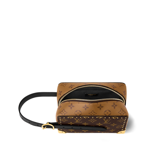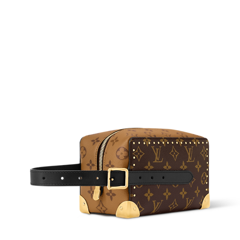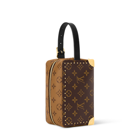 ウィメンズ アーティスティック・ディレクター ニコラ・ジェスキエールが手掛けた、モノグラム・キャンバスの「ロッカー ドップキット トランク」。「ドップキット」のオリジナルデザインを基に、特徴的なバックル付きサイドストラップと、コーナー金具やゴールドのビスをあしらうことで、メゾンの伝統的なトランクへの洗練されたオマージュを捧げています。