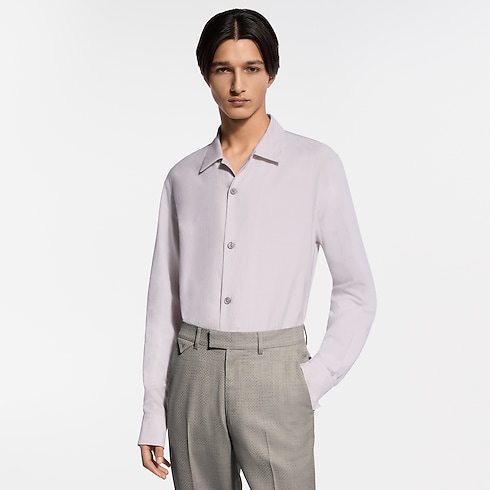 オーガニックコットンを使用した、夏の暑い季節に最適なオープンカラーのロングスリーブシャツ。柔らかな肌触りがモダンなテーラリングにリラックス感のあるムードをもたらします。軽やかな素材にジャカード織りの技法であしらったやや光沢感のあるマイクロフラワー・ダミエ モチーフと、マザー・オブ・パール風のボタンをプラス。ナポリターナスーツとレイヤードすれば、エフォートレスでエレガントなルックが完成する万能な1着。