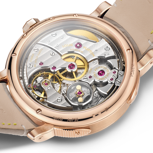 - 「LOUIS VUITTON」の刻印を施したローズゴールド(18K)のフォールディングバックル