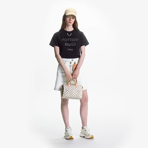 ベーシックなTシャツスタイルに「Louis Vuitton」シグネチャーをインサイドアウトであしらい、遊び心溢れるひねりを加えたアイテム。コットンジャージーにプリントしたモチーフで、斑模様のような独特な効果を演出しました。メゾンのアイコニックなチェーンのディテールがスタイルを完成させます。