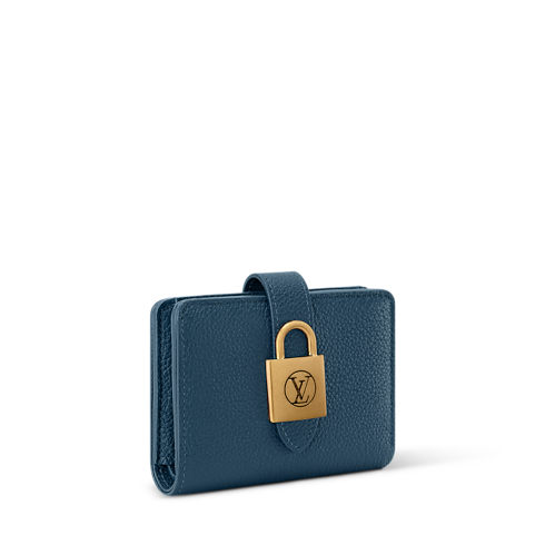 「ロウキー」コレクションから、エレガントなプルシアンブルーの色合いの「ポルトフォイユ・ロウキー・コンパクト」が登場。メゾンの伝統的なクラフツマンシップを讃えるこのタイムレスで定番の財布を、レザーを使用してミニマルなスタイルに仕上げ、なめらかなレザーのライニングを施しました。LV ロゴが刻印されたアンティーク調のパドロック(錠前)をあしらい、内装にはカードやコイン、紙幣を収納できる複数のポケットとスロットを配しています。