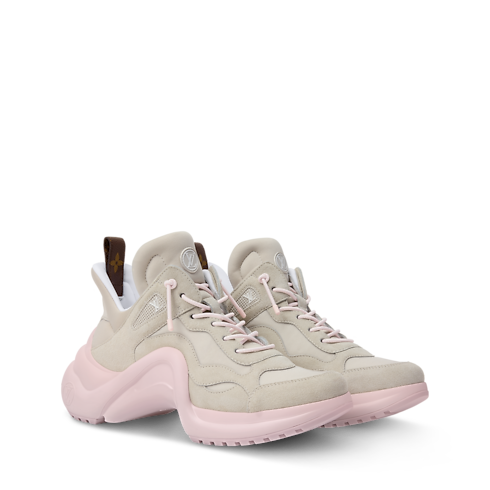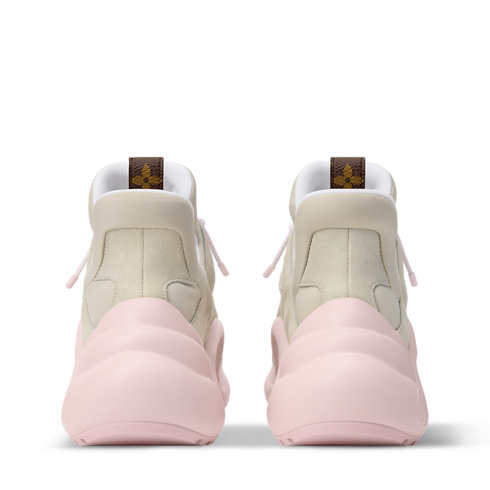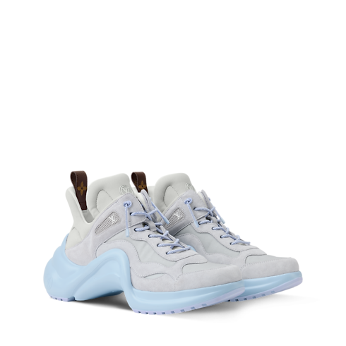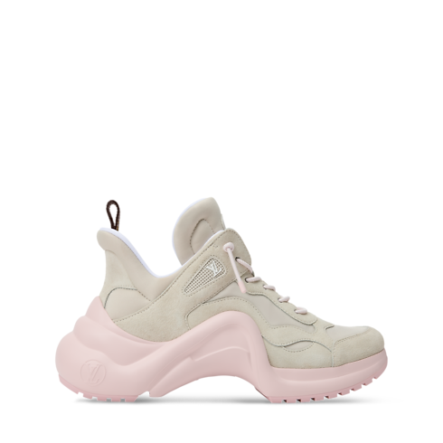 スエードレザーにテクニカルなネオプレンを組み合わせた「LV アークライト スニーカー」。このアイコニックなモデルはアッパーとのコントラストを描くカラーで仕上げた弾力性のある波形アウトソールが特徴で、さりげなく背を高く見せてくれます。シグネチャーディテールとして、シュータンとアウトソールにはLV サークル、バックループにはモノグラム・キャンバスをあしらいました。