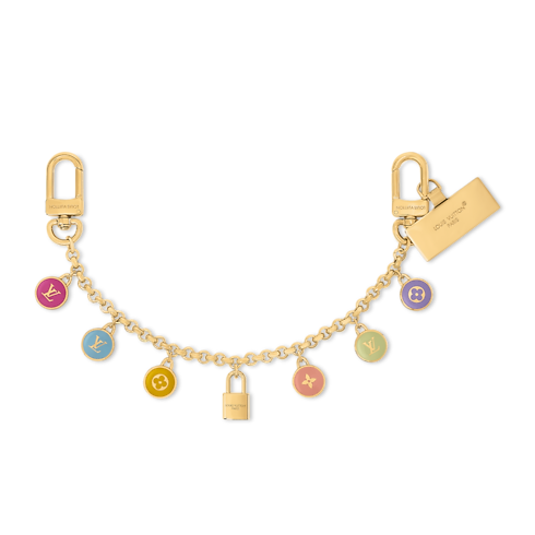 幼い頃の懐かしい思い出から着想を得た、「バッグチャーム・LV コンフェッティ チェーン」。若々しい歓びと創造性を表現したアイテムです。繊細なリンクで構成されたゴールドカラーのチェーンに、エンブレマティックなモノグラム・フラワーやLV イニシャルで彩られたカラフルなパーツとルイ・ヴィトンのパドロック(錠前)を組み合わせました。お気に入りのバッグにまばゆい輝きを放つシグネチャースタイルを添えるのに最適なアクセサリー。