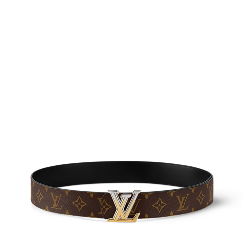 メゾンのエンブレムにラグジュアリーな印象を添えた「ベルト・LV ディメンション グラディエント 40MM リバーシブル」。ストラップの片面には深みのあるブラウンのモノグラム・キャンバスを使用し、もう片面は無地のブラックレザーで仕上げました。上部から下部にかけてシルバーからゴールドカラーへと変化するグラデーションを描くLV イニシャルのバックルが、デザインを一層引き立てます。