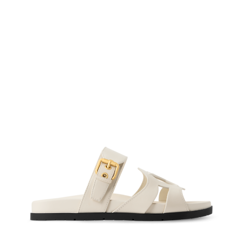 スムースレザーで仕上げ、「LV イソラ」ラインのコードを受け継ぐカジュアルながらも洗練されたデザインが魅力の「LV イソラ ミュール」。フロントストラップにはカットアウトされたLV サークル・モチーフを、もう1本の調節可能なストラップにはゴールドカラーのバックルとアイレットをあしらいました。軽量のラバーアウトソールを備えた1足。