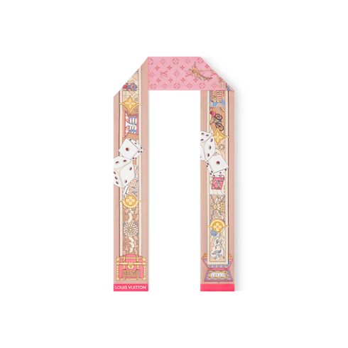 遊び心溢れる精緻なデザインが魅力の「バンドー・LV ジャーニー」。卓越したクラフツマンシップとメゾンを象徴する控えめなシグネチャーを組み合わせたアイテムです。トランクやバッグ、サイコロといった旅やゲームを想起させるモチーフを織り交ぜた、クリエイティブなプリントが印象的。コンテンポラリーでありながらタイムレスな魅力を放つ、アイコニックなアクセサリーです。