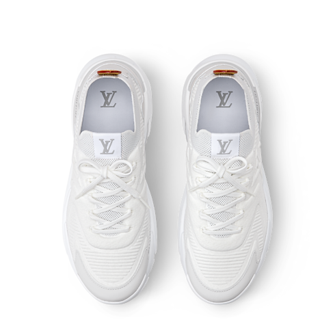 1枚仕立てのテクニカルニットを使用した「LV タティック ニット スニーカー」。サイドのダイナミックなLV シグネチャーをはじめとする、質感のあるディテールが際立つアイテムです。アッパーにはレザーのトリミングや、ルイ・ヴィトンのレザーグッズに見られるハンドルマウントを想起させるヌメ革のバックタブなど、洗練されたディテールを施しました。超軽量のラバーアウトソールを備え、スリッポンのような快適な快適な履き心地を実現します。