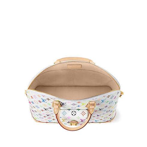 独特のシルエットが魅力の「LV × TM アルマ・トラベル」。モノグラム・マルチカラー キャンバスを使用し、ポップアートのエスプリを表現したアイテムです。2003年に村上隆がメゾンのために手掛けたマルチカラーのモチーフは、33色もの多彩なカラーでモノグラムを再解釈したもの。内装にはクリームカラーのマイクロファイバーをあしらい、ヌメ革のトリミングやリベットなどのゴールドカラーの金具で彩りました。