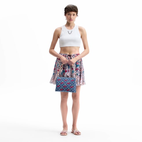 活気溢れる「ルイ・ヴィトン × 村上隆」リエディション・コレクションに登場したアイコニックな「LV × TM クッサン PM」。モノグラム・デニムに、この日本人アーティストのシグネチャーである大胆で陽気なチェリー・モチーフを刺繍し、遊び心たっぷりにアップデートしました。取外し可能なゴールドカラーのチェーンと調節できるレザーストラップを備え、内装には大きめのスマートフォンをはじめとする普段の必需品がすっきり収まります。