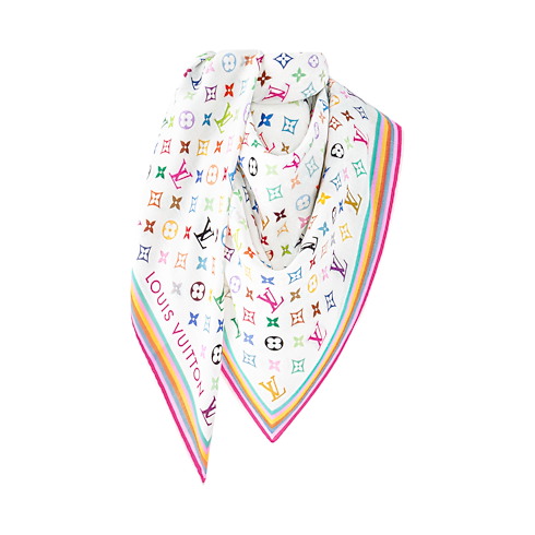 メゾンと著名な日本人アーティスト 村上隆とのエクスクルーシブなコラボレーションによる新作「LV × TM ショール・モノグラム マルチカラー」。村上隆ならではの視点で鮮やかに再解釈されたエンブレマティックなメゾンのパターンを33色の異なる色合いでホワイトの背景に配し、個性的な魅力をプラス。季節を問わず着用できるウール & シルクの混紡素材を使用して柔らかく軽量に仕上げました。本コレクションの他のアクセサリーとのコーディネートにも最適なデザインです。