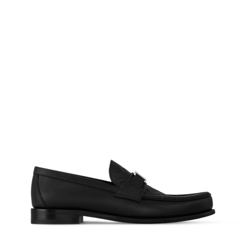 しなやかなレザーで仕上げたタイムレスな「メジャー ローファー」。本モデルの特徴的な手縫いの前面には、メゾンを象徴する2つのディテール、デボス加工で施されたモノグラム・パターンとシルバーカラーのLV イニシャル アクセサリーを組み合わせました。レザー&ラバーアウトソールにより、最適な履き心地と耐久性を実現しています。