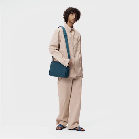 「LV アエログラム」コレクションならではのディテールを散りばめた「テイクオフ・メッセンジャー」。ミニマルなデザイン、統一感のある色使い、コーナー部分を斜めにカッティングしたフラップが特徴です。グレインレザーで仕立て、フロントにはトーン・オン・トーンのメタルで象ったLV イニシャルをあしらいました。「Louis Vuitton」シグネチャーを織り込んだ、取外し & 調節可能なテキスタイルストラップで、ショルダーキャリーでもクロスボディキャリーでも快適にお楽しみいただけます。