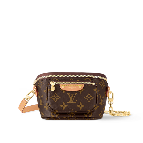 モノグラム・パターンがエンボス加工で施されたしなやかなモノグラム・アンプラント レザーで再解釈された「ミニ バムバッグ」。取外し & 調節可能なストラップと着脱できるゴールドカラーのチェーンで、多彩なスタイルと持ち方を楽しめるトレンド感溢れるアイテムです。ファスナー開閉式のメインコンパートメントと、エンボス加工を施したレザータグを添えたファスナー付きのフロントポケットを備えています。