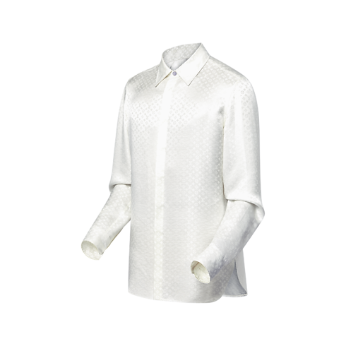 オーガニックシルク100%を使用したシックなホワイトのイブニングシャツ。ミニ・モノグラム ジャカードを全面に施すことで生まれるさりげない質感が、生地のなめらかなドレープと自然な光沢感を引き立てます。イブニングスタイルに洗練されたシグネチャーのひねりを効かせる万能な1着。
