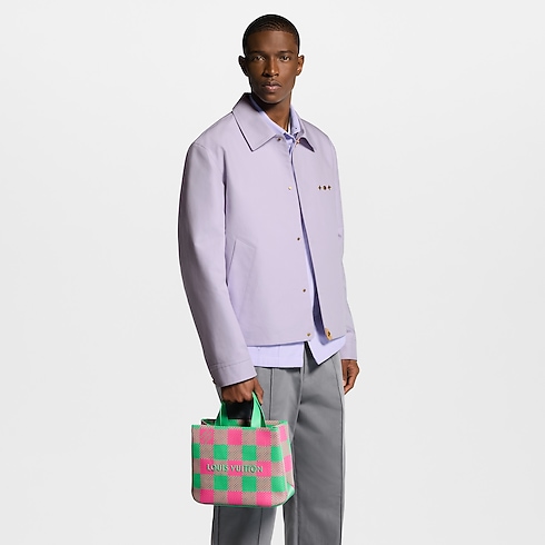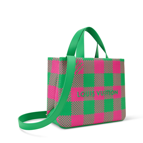 伝統的なマーケットバッグから着想を得た「ショッパー・トート MINI」。レザーを織りの技法で仕上げ、グリーンのテキスタイルライニングをあしらった、鮮やかな色合いが目を引くデザインです。織り機にかける縦糸はすべて手作業でセットされ、パネル状に織り上げられ、「LOUIS VUITTON」の刺繍が施されます。ルイ・ヴィトンを象徴するダミエ・モチーフには、ファレル・ウィリアムスのホールマークである「Marque L. Vuitton déposée」があしらわれています。