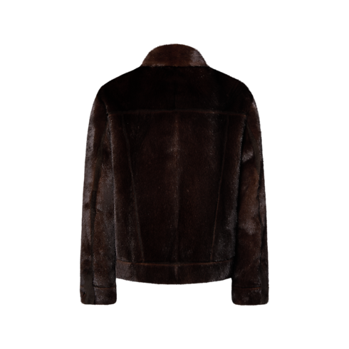 2026春夏ファッションショーに登場したエレガントなミンクジャケット。トラッカーのシルエットに洗練されたひねりを加えています。深みのあるチェスナットカラーの贅沢なファーを、定番のデニムジャケットのパネル構造を想わせる立体的なインターシャ(象嵌細工)の技法で仕上げました。シグネチャーのレザーパッチが片側の胸ポケットを彩り、クォーツ風ボタンがダンディな印象を添えます。