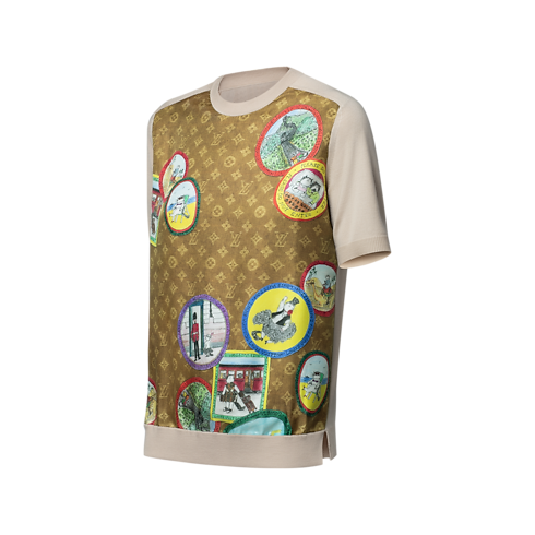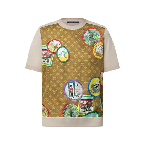 グレース・コディントンとのコラボレーション「トラベル ウィズ」に登場する一風変わったシグネチャーにより、定番アイテムを活気溢れるステートメントにアップデートしたニットトップ。柔らかく軽量なウールで、ショートスリーブとクルーネックラインを備えた快適な着心地のTシャツシェイプに仕上げました。シルクツイルを使用した前面の全体には、猫がテーマのカラフルなトラベルスタンプを重ねたモノグラム・モチーフをあしらっています。