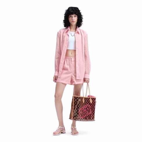 メンズ・ウェアのコードを鮮明に表現したボクサースタイルのショートパンツ。2つの繊細なマザー・オブ・パール風のボタンをあしらった伸縮性のあるウエストバンドを配し、カジュアルなストレートシェイプに仕立てました。コットン & シルクのエレガントな混紡素材を使用し、アイコニックなモノグラム・モチーフをフィルクーペ織りの技法で全面に施しています。