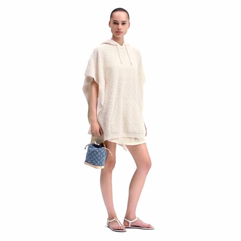 ゆったりとしたロングシルエットでエフォートレスなサマースタイルを演出するポンチョ。夏の装いの上から簡単に羽織れる1着です。コットン & ウールの混紡素材を使用したプラッシュ(フラシ天)のタウアリングの全面に、モノグラム・フラワーをレリーフ加工でさりげなく配しました。ドローストリング付きのフードや広々としたカンガルーポケット、リブ編みのエッジ部分がスポーティな雰囲気を控えめに添えます。