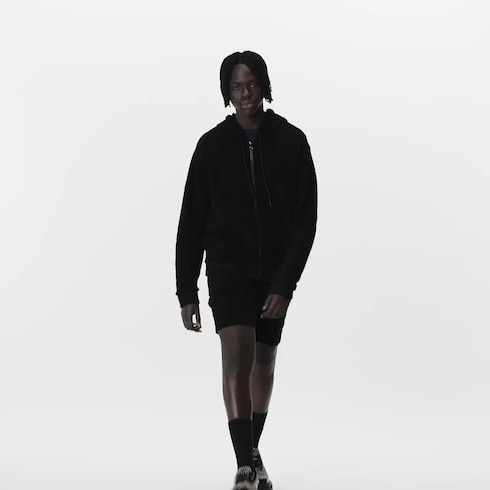 フレンチテリーを使用した、ビーチでのリラックスタイムにぴったりなショートパンツ。調節可能なドローストリング付きのウエストで、快適性と洗練した雰囲気を兼ね備えたアイテムです。ブラックのコットン混紡素材で仕立て、全体にトーナルなモノグラム・パターンをデボス加工しました。同シリーズのフーディと合わせたコーディネートもお楽しみいただけます。