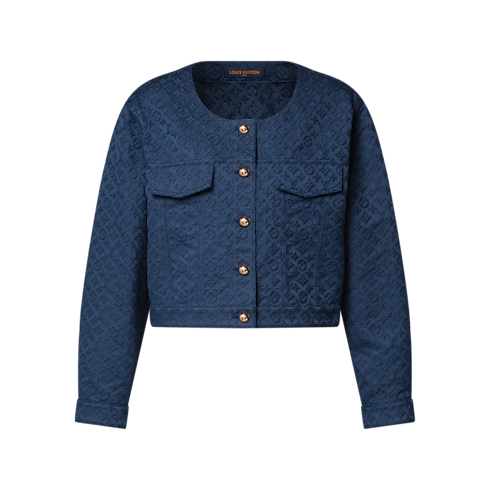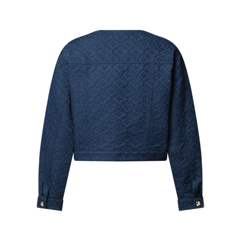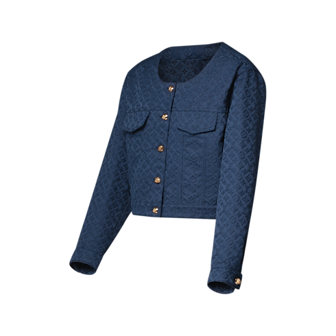 シックなクロップドシェイプに仕立てた、コットンギャバジンのジャケット。トーン・オン・トーンのモノグラムジャカードを全面にさりげなくあしらいました。ラウンドネックラインと胸元のフラップポケットがモダンで構築的な印象を演出し、ゴールドカラーに仕上げた今シーズンならではのドーム型アンカーボタンが華やかなマリンテイストのスタイルを完成させます。