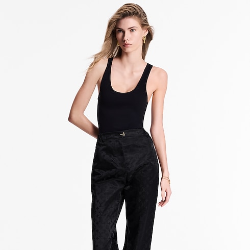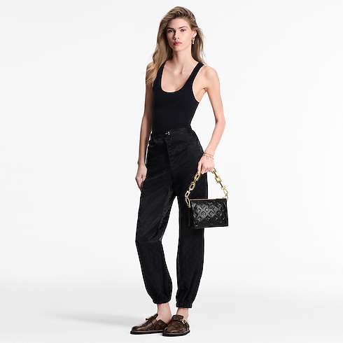 今コレクションのシックなスポーツウェアのテーマを取り入れたカジュアルなジョギングパンツ。今シーズンのシグネチャーであるステンシル効果のモノグラム・パターンをあしらいました。ゆったりとしたフィット感のレッグ部分と伸縮性のあるアンクル部分がスタイルを完成させます。