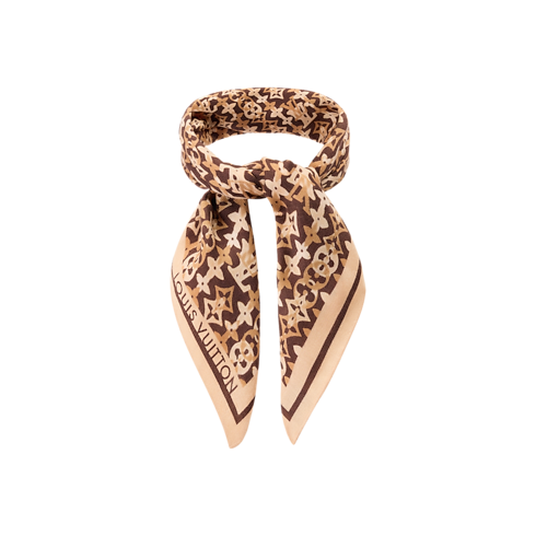 メゾンを象徴するディテールを斬新かつ身に着けられるスタイルで表現した、イタリア製の「バンダナ・モノグラム オーバーラップ」。カシミヤとシルクの混紡素材を使用し、メンズ・プレタポルテから着想を得たLV イニシャルとモノグラム・フラワーを重ね合わせた精緻なデザインのモチーフを上品なブラウンの連続模様で描きました。ハンドロール仕上げのより柔らかな質感を演出する一品です。