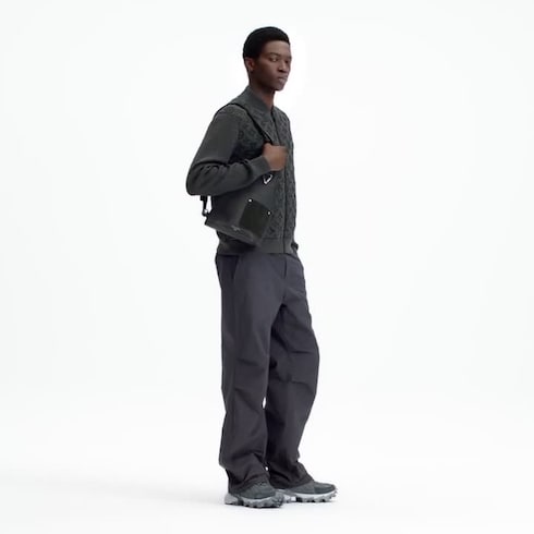 ダークグレーのウール製ニットで仕立てたボンバージャケット。軽やかなアウターとしてはもちろん、室内でも快適に着用できる万能な一着です。パッド入りのボディには、立体的なキルティング効果をもたらす洗練されたニットで、全面にモノグラム・モチーフをあしらいました。あらゆる毎日の装いを完成させるエフォートレスなアイテム。