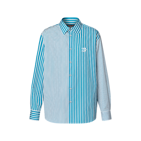 太陽が輝く夏らしい日にぴったりの爽やかでグラフィカルなシャツ。オーバーサイズのシルエットで、モノグラム・ジャカードに鮮やかなブルーでプリントした幅広 & 幅狭のストライプのデザインから成るパッチワーク構造が特徴です。LV フラワーのラバーパッチが遊び心溢れるタッチを添える、涼し気なアイテム。