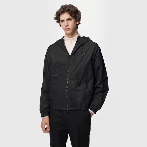 撥水加工を施したテクニカルファブリックを使用した、エレガントなリバーシブルスタイルのウインドブレーカー。片面はマットな無地に仕上げ、カラビナと、左胸にはフックピンのシグネチャー・ディテールをあしらいました。もう片面は全体を彩るトーナルなモノグラム・ジャカード パターンが魅力。天候の変化に合わせてさまざまなスタイルをお楽しみいただける、ワードローブに欠かせない1着。