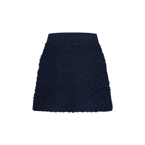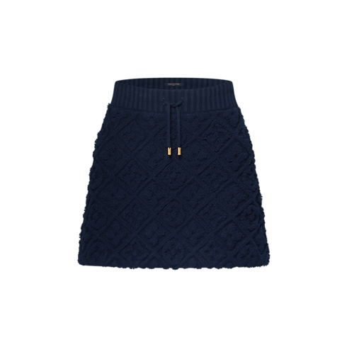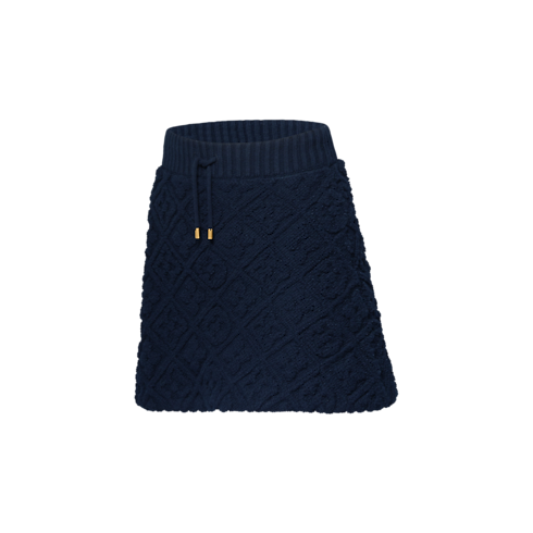 レリーフ効果を演出するアイコニックなモノグラム・モチーフを全面に施したミニスカート。温かみのあるウール&カシミヤの混紡素材を使用した、プラッシュ(フラシ天)のタウアリングで仕立てました。控えめなAラインのシェイプに大きなリブ編みのウエストが際立ち、金具付きのドローストリングがカジュアルでスポーティなスタイルを完成させます。