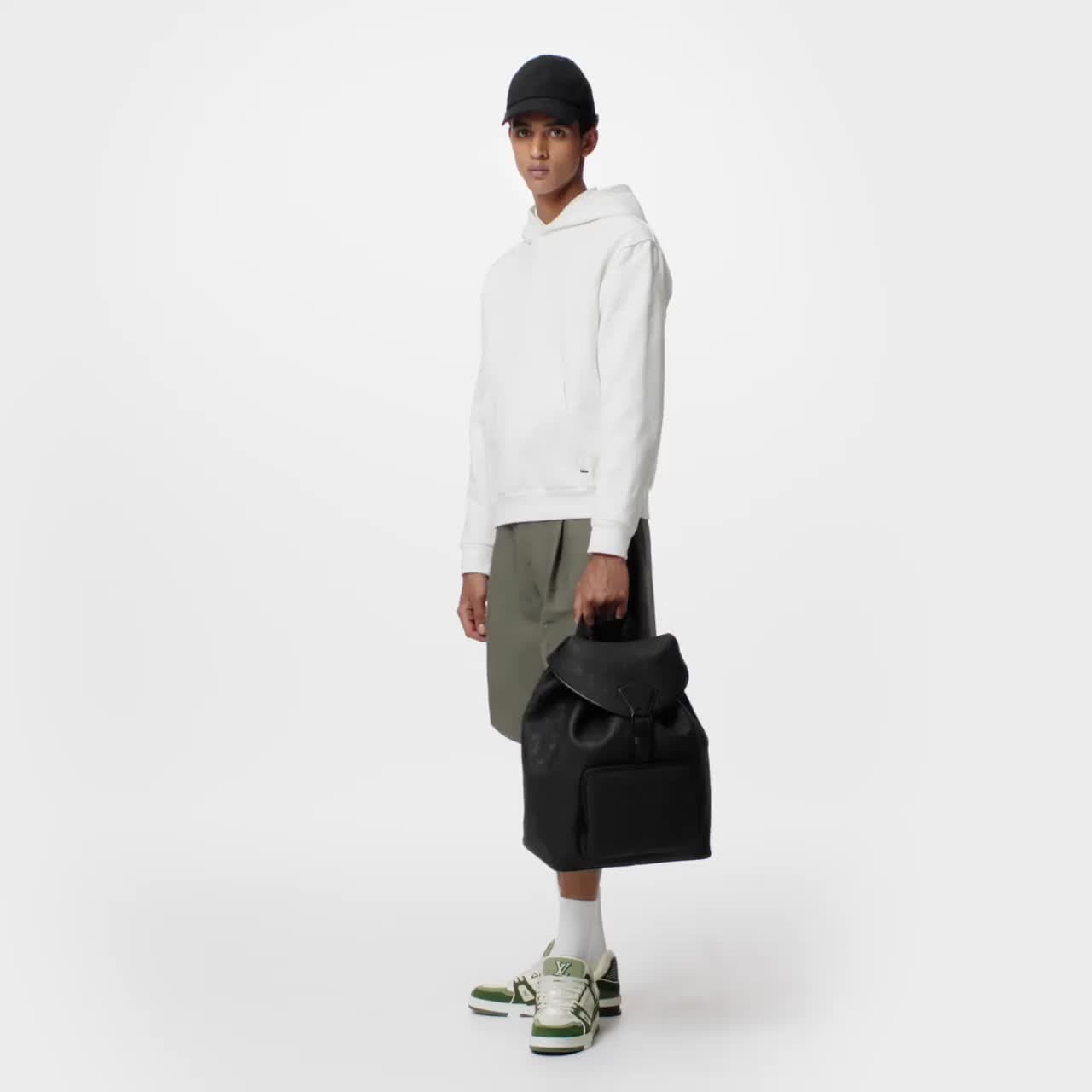 モノグラム・パターンをエンボス加工したブラックのトリヨンレザーで仕立てた「モンスリ・バックパック」。スタイルと機能性を兼ね備えたアイテムです。トーン・オン・トーンのブラックで統一したメタルパーツに、さりげないエレガンスが薫ります。パッド入りのコンパートメント、内側の2つのフラットポケット、簡単に中身を取り出せるファスナー付きのフロントポケットをあしらった実用性も魅力。