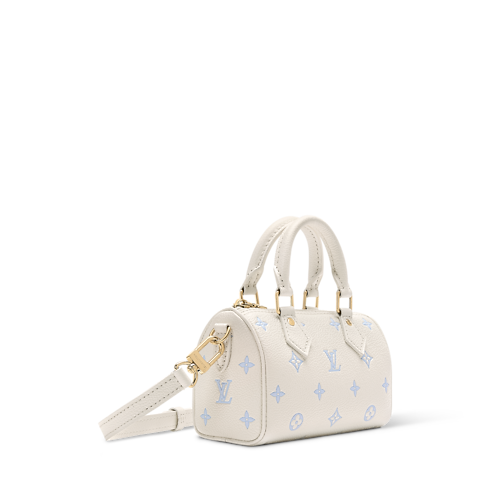 メゾンを象徴するモノグラム・アンプラント レザーと美しく調和する、今シーズンならではのバイカラーの色合いで再解釈されたアイコニックな「ナノ・スピーディ」。ゴールドカラーの金具で彩ったデイタイムからイブニングまで活躍するこのアイテムは、2本のハンドルと取外し可能なストラップにより多彩な持ち方を楽しめます。小ぶりの財布などの毎日のマストハブアイテムを収納できる、充分なスペースを備えた内装も魅力。