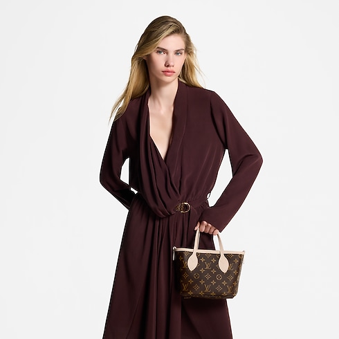 2通りで楽しめるスタイルに再解釈された今シーズンの「ネヴァーフル・インサイドアウト BB」。片面はライムストーンのレザー、もう片面はメゾンを象徴するモノグラム・キャンバスで仕上げました。取外し可能なファスナー式ポーチは、単体で、もしくは外ポケットとして取付けても使用できます。光沢感のあるゴールドカラーの金具やハートのモチーフが華やかさをプラス。