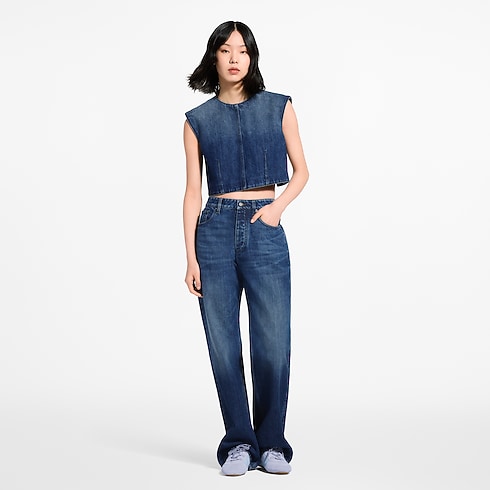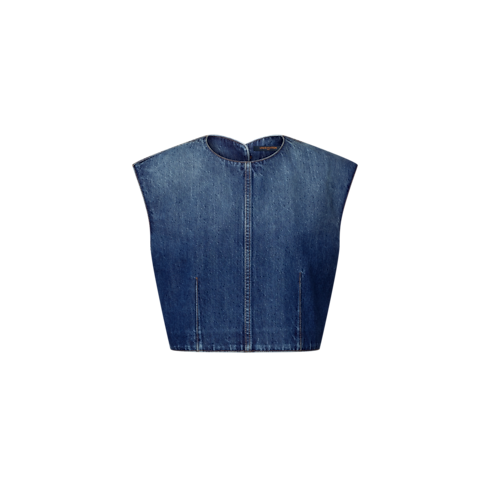 ロウデニムをすっきりとしたクロップド丈に仕立て、スマート&カジュアルのコードにひねりを加えたトップ。コントラストを効かせたトップステッチが、構築的なシームのディテールとフロントの2本のダーツを際立たせ、背面に遊び心たっぷりにあしらわれたシャープなスリットがモノグラム・キャンバスのボタンで留められています。