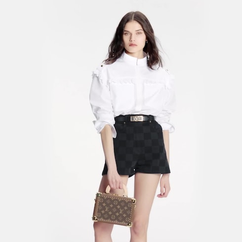 2022クルーズ・コレクションに向けて、ニコラ・ジェスキエールが新たにデザインしたウェアラブルアイテム「プティット・ヴァリーズ」。ルイ・ヴィトンを象徴するスーツケースをミニチュアサイズにアレンジし、トップハンドルをあしらいました。ワードローブに欠かせない、フェミニンな雰囲気のトランクです。
