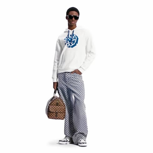 毎日の装いをグラフィカルなシグネチャーアクセントで彩る、軽やかで夏らしいオーガニックコットンジャージーのフーディ。ミルキーホワイトのベースに、2025秋冬ファッションショーに登場したヴィトン・フラワー モチーフをコントラストカラーのブルーで胸元にあしらいました。同じく鮮やかなブルーで配したフーディのコードを、ヴィンテージ風ゴールドカラーのメタル製エンドチップが飾ります。