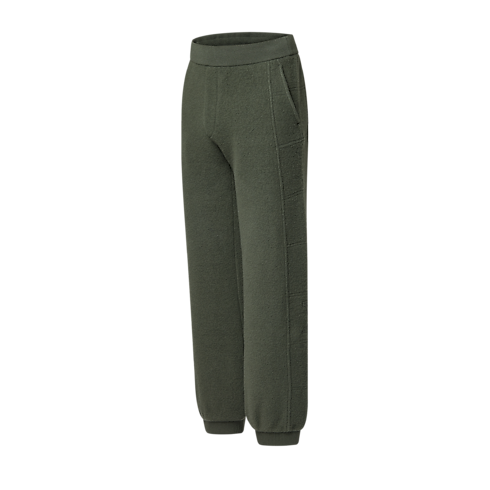 カジュアルでありながらエレガントなラウンジウェアから着想を得たパンツ。タイムレスなオリーブグリーンの暖かくて柔らかな肌触りのフリースを使用した旅行に最適な1着です。スポーティなトップステッチを施したパネルがキルティング風の表情を演出し、左脚にはLV イニシャルの刺繍をあしらいました。リブ編みのウエストバンドとカフが快適さを実現します。同シリーズのブルゾンと合わせれば心地よいスタイルに。