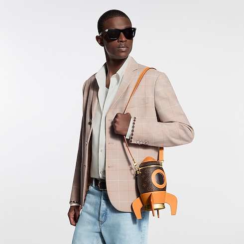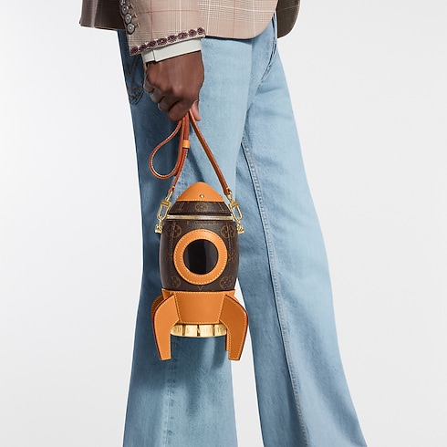 旅のスタイルを格上げする、モノグラム・キャンバスの「ロケット シャトル・ウェアラブル ウォレット」。ロケットのノーズコーンを思わせる開口部を開くと、全面レザーの内装が広がります。スマートフォン2台と小ぶりな財布が収まる絶妙なサイズ感で、何が入っているのか一目で確認できる小窓も特徴。