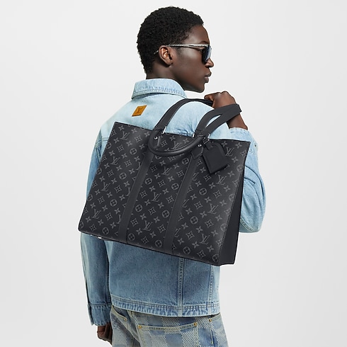 モノグラム・エクリプス キャンバスがマスキュリンなエレガンスを演出する「サックプラ 24H」サイドバンドやハンドルマウント、取外し可能なネームタグが特徴のたっぷりとした容量が魅力のトートバッグは、ノートパソコンも収納できるサイズのポケットに加え、ファスナー付きやフラットなど複数のポケットを備えています。手持ちできるショートハンドルと、ショルダーキャリーできるロングハンドル付き。