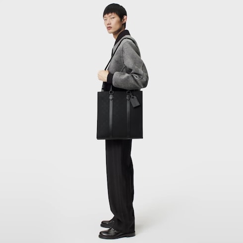 モノグラム・パターンをエンボス加工したトリヨンレザーを使用し、機能性とスタイルを融合させた大容量のバッグ「サックプラ」。ストレートなエッジ、直角のライン、レザーのサイドバンド、ロール仕上げのレザーハンドルで、目を引くデザインに仕上げました。取外し & 調節可能なストラップで、ショルダーキャリーもお楽しみいただけます。ノートパソコンを収納できるパッドを入れたコンパートメント付き。