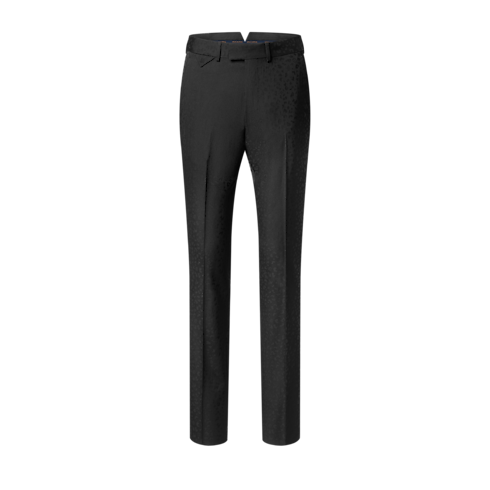 上品なブラックのシガレットパンツ。本コレクションならではのLV チーター・モチーフを贅沢にあしらいました。「責任ある調達」によるウールのリッチなサテン・ジャカードで表現したグラフィカルなチーター柄には、モノグラム・シグネチャーをさりげなく織り交ぜ、マットと光沢感のあるテクスチャーの豊かなコントラストを生み出しました。同シリーズのジャケットと合わせれば、一際存在感を放つシャープなイブニングルックに。