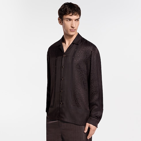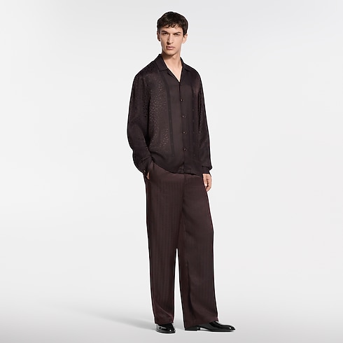 スカーフのようにリッチな装飾が施された、流れるようなシルクブレンドのパジャマシャツ。リッチなブラウンのトーンで、今シーズンのLVチータージャカードが特徴です。グラフィックなチーター柄のパターンには、光沢のある質感の遊び心でさりげないモノグラムのシグネチャーが組み込まれています。ゆったりとしたリラックス感のあるシルエットは、お揃いのパンツと合わせることで、快適でシックなイブニングセットになります。