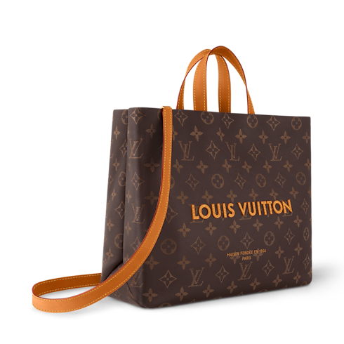 モノグラム・キャンバスのように見えるしなやかなカーフレザーを使用したエレガントなバッグ「ショッパー・トート MM」。レザーに施した特別な加工によってモノグラム・キャンバスにヴィンテージ風の効果を生み出し、ファレル・ウィリアムスの遊び心溢れるデザインを表現しています。2本のトップハンドルと取外し可能なショルダーストラップを備えた多用途なアイテム。