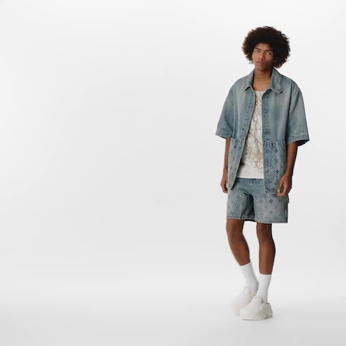 ウォッシュデニムで仕立てた、夏のアウターとしても活躍するショートスリーブのワークウェアシャツ。落ち着いた印象のシルエットに、全面にモノグラム・パターンをエンボス加工したたっぷりとしたオーバーサイズのポケットをあしらいました。同シリーズのショーツとコーディネートすればエフォートレスでトレンディなスタイリングがお楽しみいただける、夏に欠かせないアイテムです。
