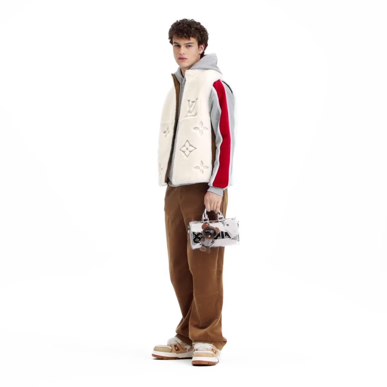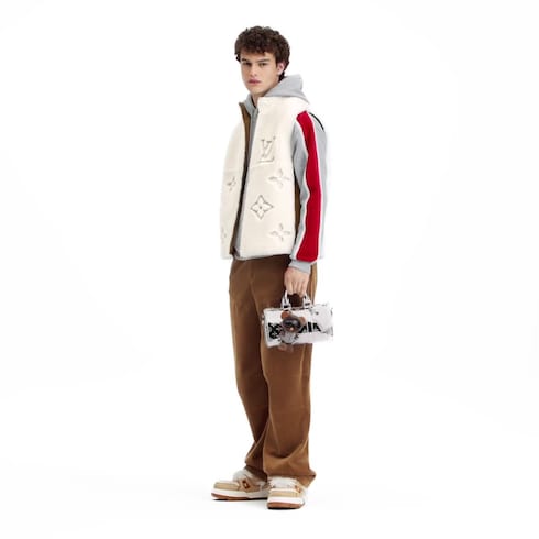 冬のリゾート休暇でのリラックスタイムに最適な、スポーティなフーディ。柔らかなグレーメランジのコットンジャージーに、レッドのインサートをあしらい、袖とフードにスポーティな印象を添えました。右袖には刺繍で施した手描き風の「Louis Vuitton」パッチを、胸元にはトーナルな刺繍の「LV」パッチを配し、プレッピーな印象に。