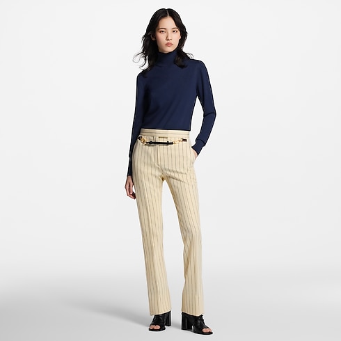 フィット感のあるシェイプに暖かいタートルネックを合わせた、タイムレスで万能なプルオーバー。軽量のウールにシルクをブレンドすることでワンランク上の暖かさとエレガンスを実現し、背面にはオーバーサイズの「Louis Vuitton」タグを配してモダンなシグネチャーを添えました。