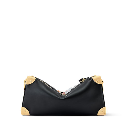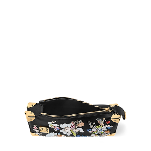 「エデン・エンブロイダリー」コレクションから登場した「スリム トランク」。マルチカラーのジェムストーンとストラスで彩られた印象的なアイテムです。定番のブラックレザーにレザートリミングをあしらい、ゴールドカラーのトランクのコーナーやSロックスタイルの留め具、チェーンで仕上げました。イブニングシーンにふさわしいエレガントなデザインで、ロングストラップは付け外しが可能で、多彩なスタイルが楽しめます。